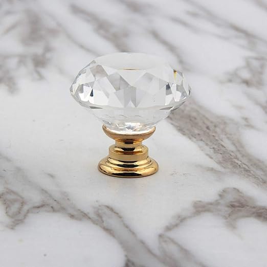 5 Pcs Crystal Glass Cabinet Knobs 30mm Diamond Shape Pulls Handles